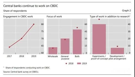 时隔一年,BIS于2020年3月再次发布了这项调查的追踪报告《即将到来——央行数字货币调查的续集》[国际清算银行(BIS) 2019.01《Proceeding with caution – a survey on central bank digital currency》调查报告]。从2019年的调查结果来看,大多数央行仍旧在努力研究发行数字货币对其管辖权的影响。