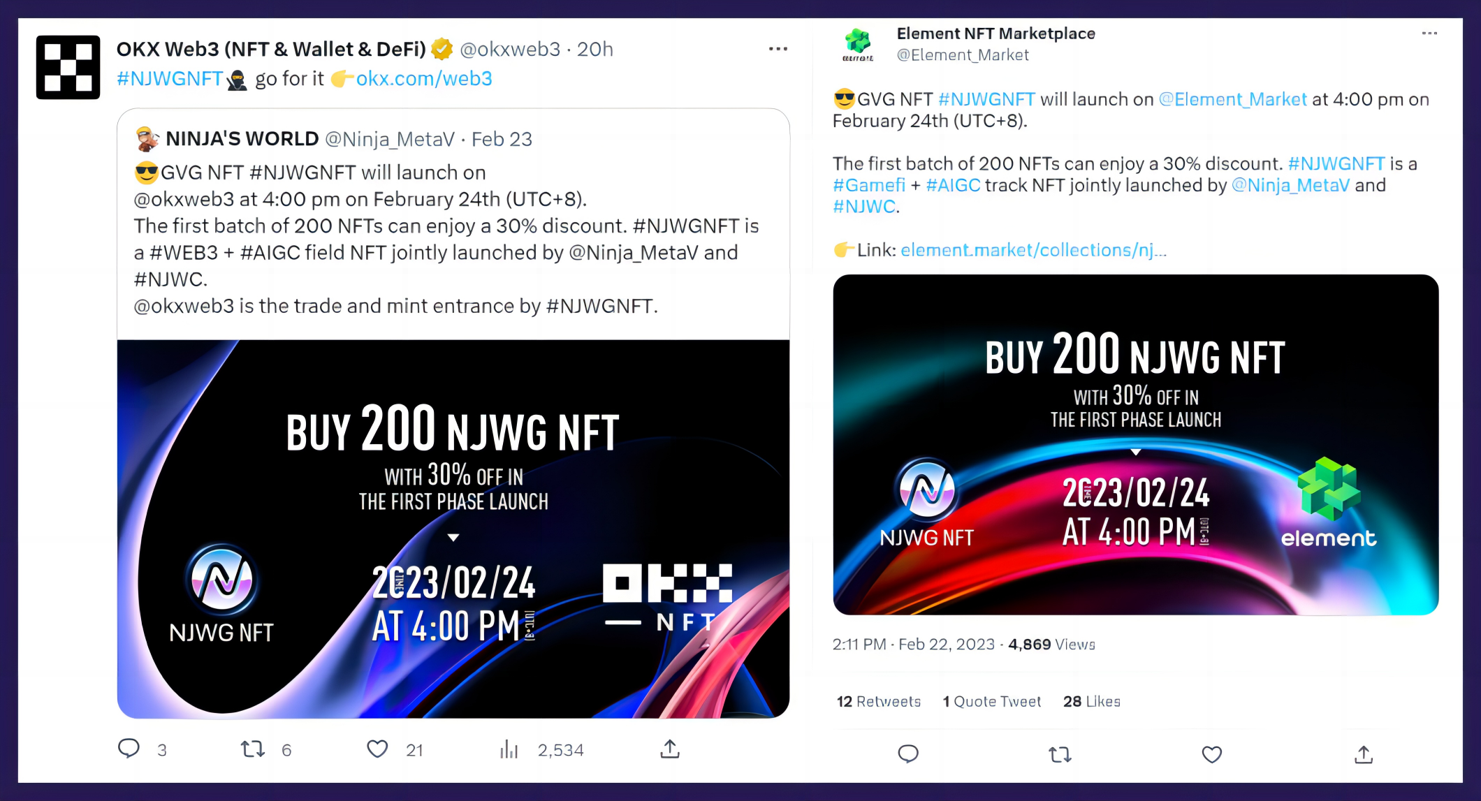 全球首发!NJWG NFT 2月24日下午四点正式发售!Element、OKX平台震撼上线!