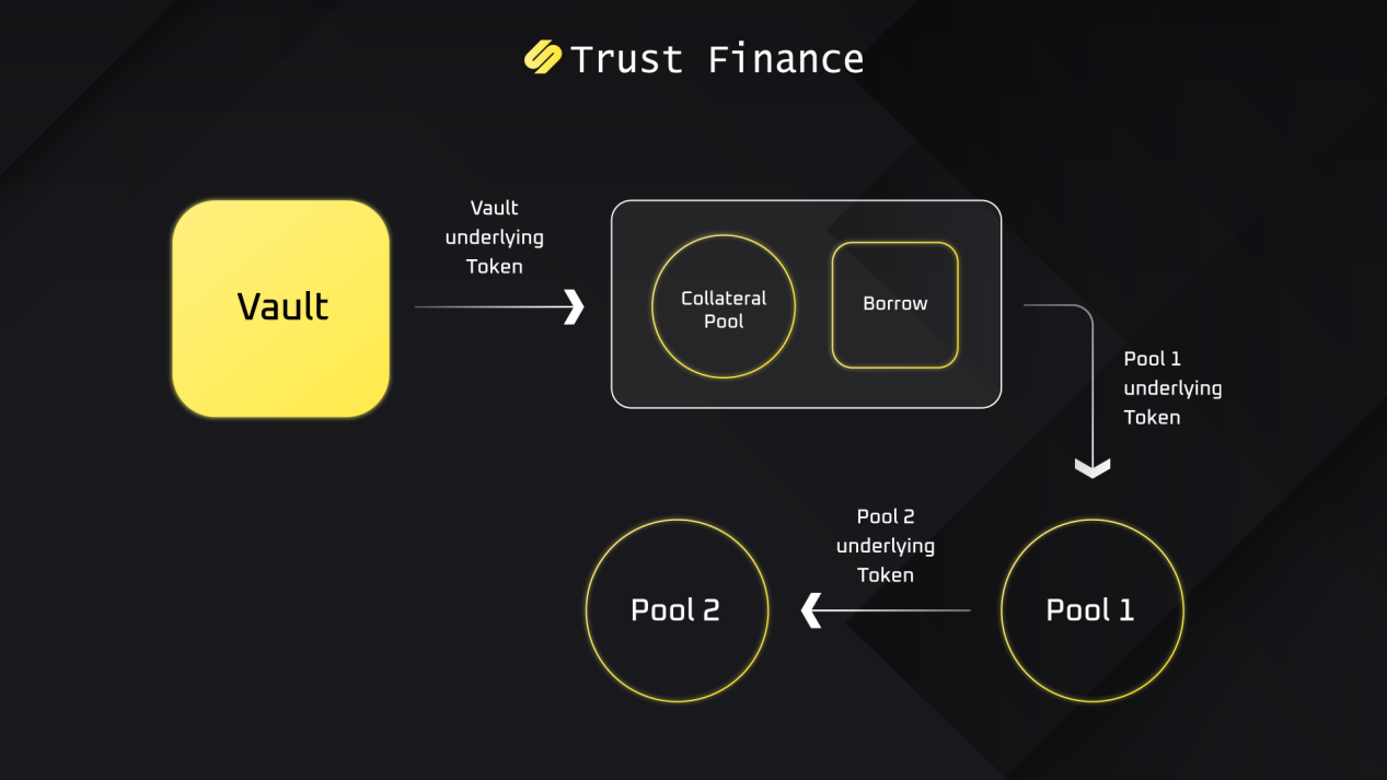 目前金库包括的主要是美元稳定币,如DAI、USDT、USDC和TUSD。例如,如果用户将DAI存入Trust Finance,用户将收到TUT代币作为收益。
