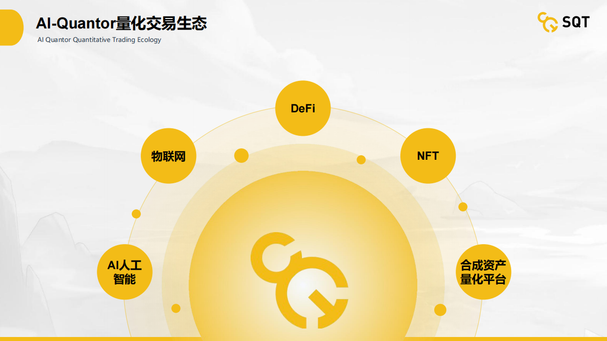 AI-Quantor量化交易生态包含:AI人工智能与物联网和DeFi、NFT、合成资产量化平台。