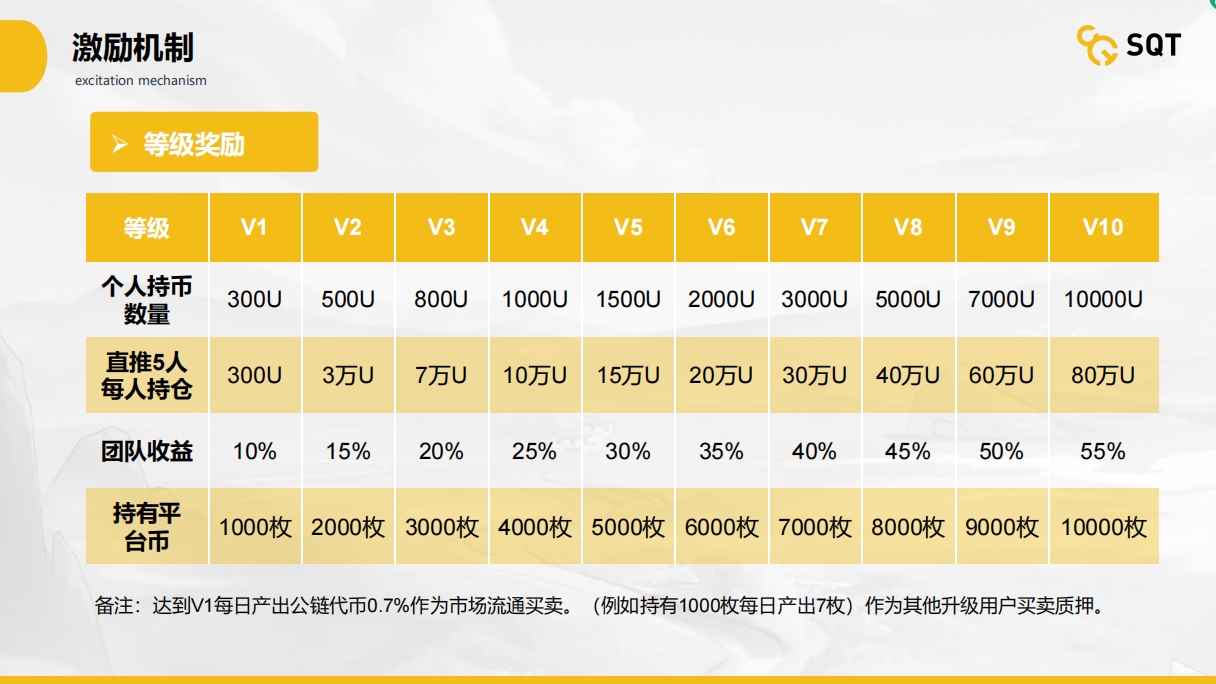 二.质押挖矿:质押U作为产出100枚起步,产出如下:第1天0.7,第2天0.8,第3天0.9,以此类推(10天一个周期,第11天0.7起以此循环)。