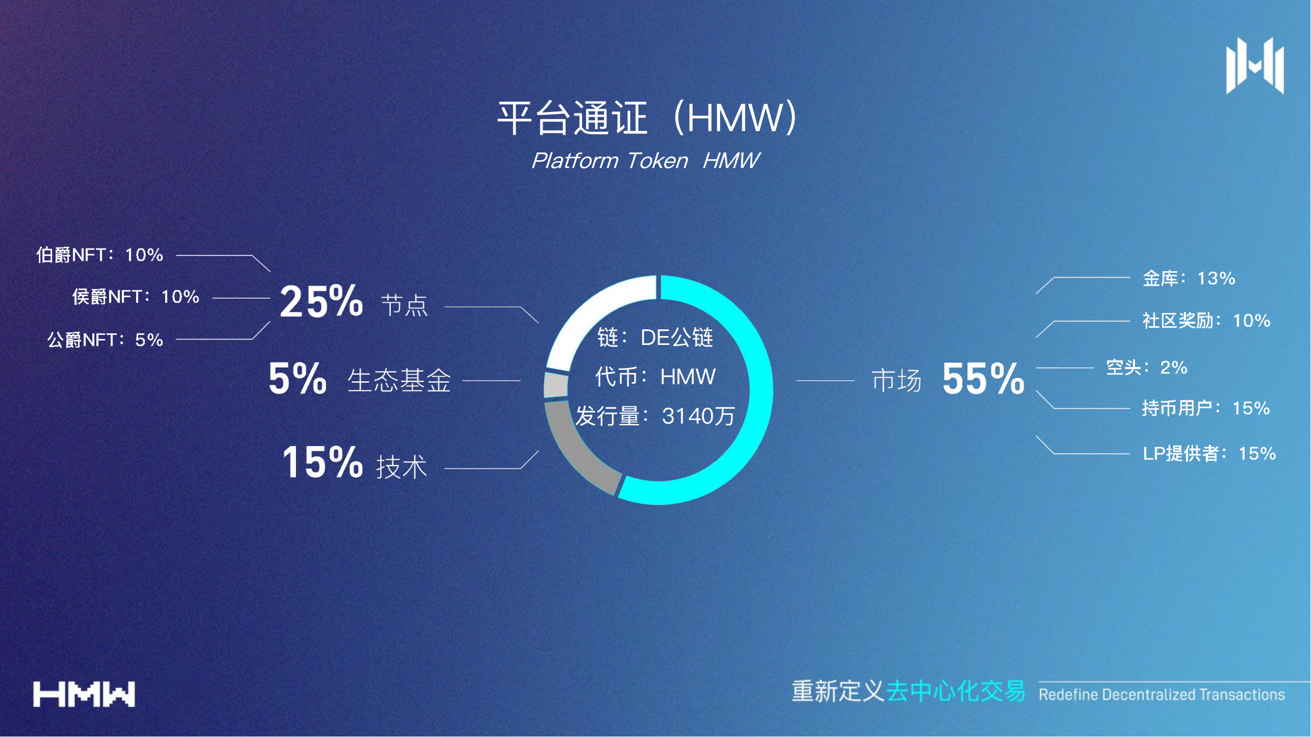 HMW token的总供应量为3140万枚,构成了DEswap生态系统的经济支柱;