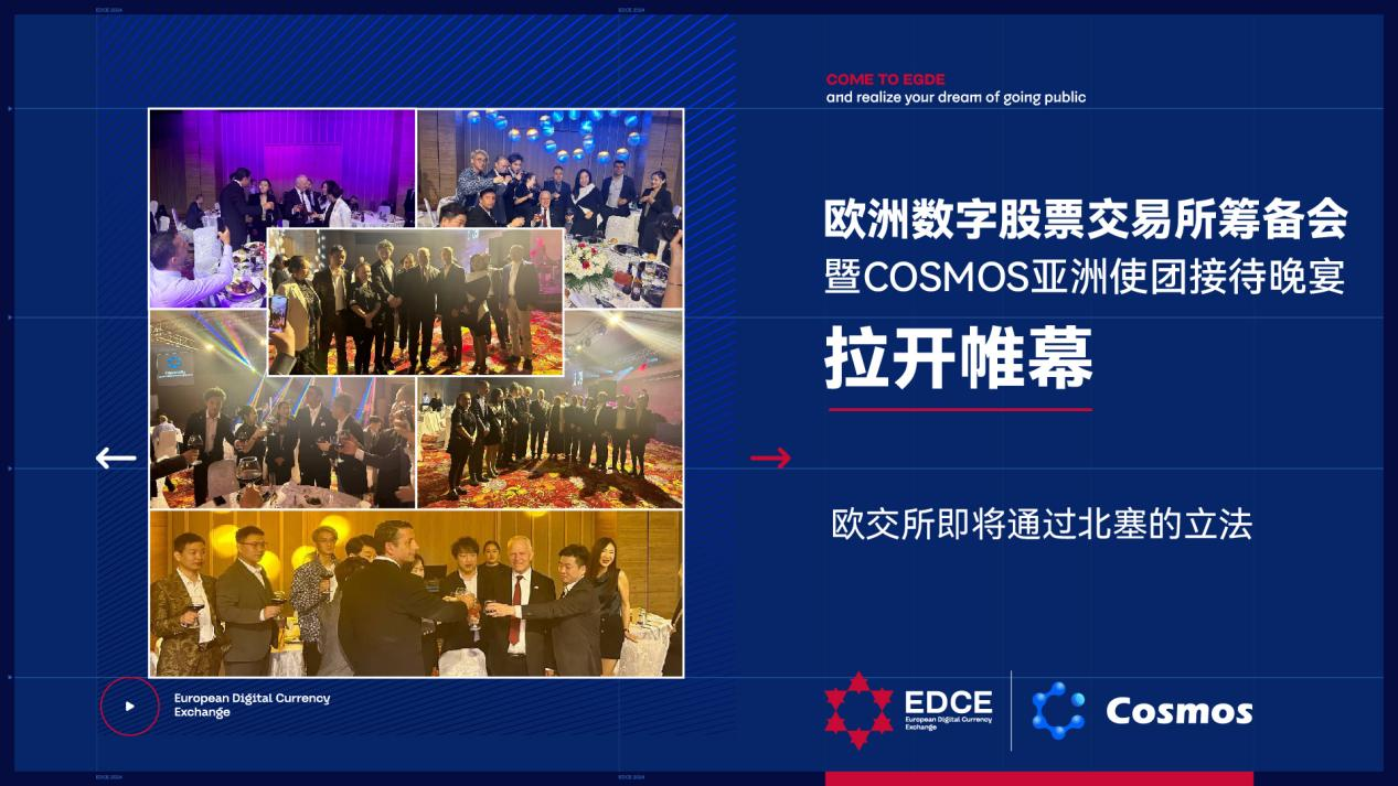 作为即将通过北塞立法的欧交所,它不仅是一项金融创新,更是全球金融市场的一次重大变革。COSMOS在此重大事件中扮演着关键角色,为欧交所的12月全球启动提供了庞大且活跃的社群基础,特别是在亚洲市场上展现了前所未有的活跃度和影响力。北塞副总统及政府高层对COSMOS的成就给予了极高的评价和认可,肯定了其在促进全球数字经济发展中的重要作用。