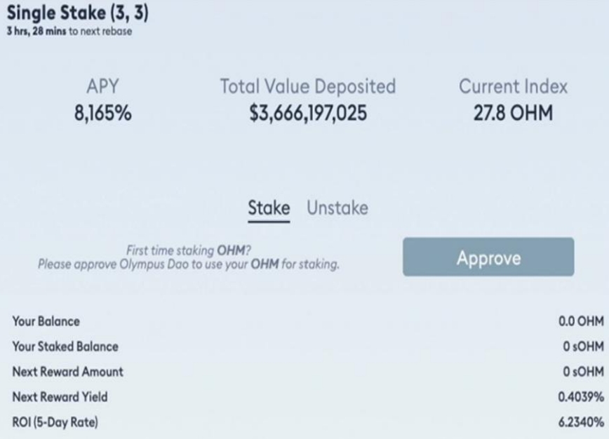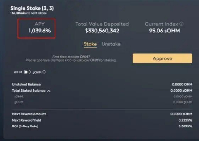 Olympus 協議是一個去中心化金融 (DeFi) 系統,原生代币 OHM,以 4 美元的开盘价开始,并迅速上涨到接近 1300 美元,总市值达到 43 亿美元。现在虽然 2 年多过去了,