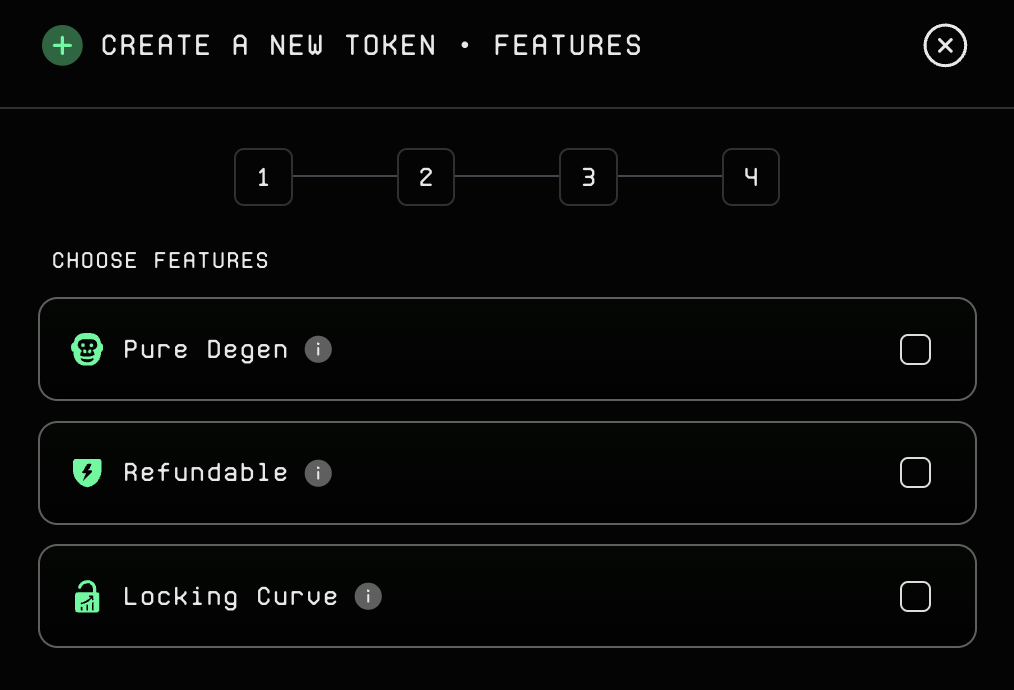 Super Meme 独创的功能解决了 在Meme 币创建过程中遇到的诸多难题,不仅仅帮助Meme创作者们实现了自由发行代币的梦想,更是改变了整个行业的游戏规则!平台提供了三种 Meme 币创建选项,专门为降低跑路风险、增强社区信任而设计: