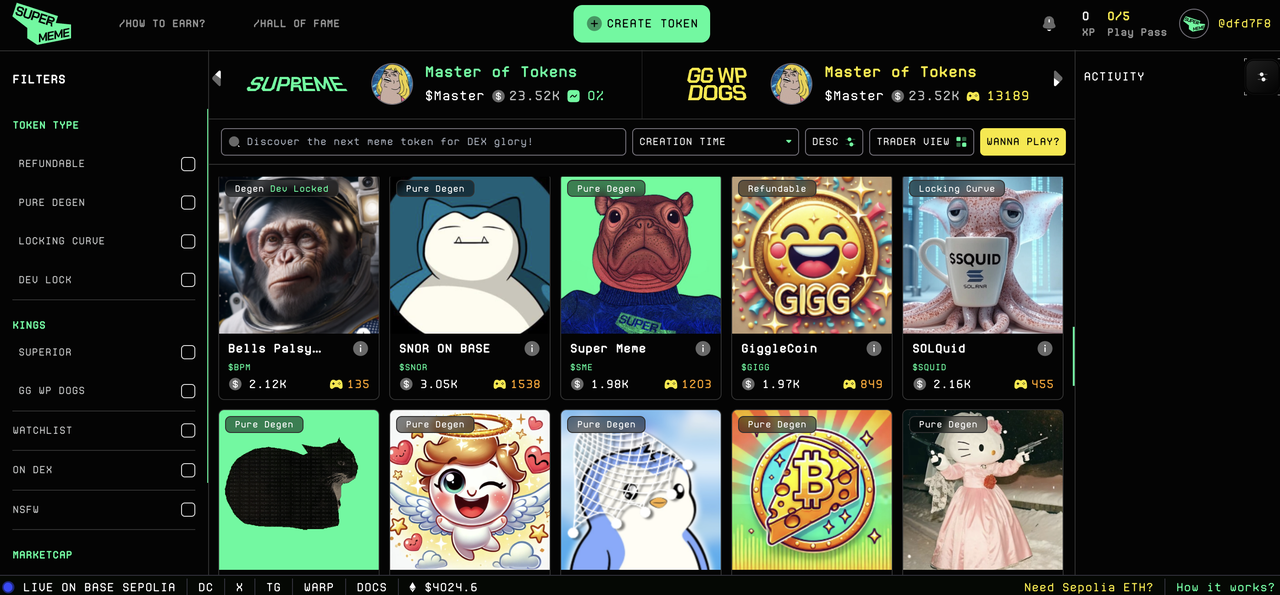依托 Base 网络的快速发展,Super Meme 提供了低交易费用和极速处理速度,让所有用户都能享受到顺畅无缝的体验。平台的界面设计既简洁又直观,完美融合去中心化文化的活力与高效易用性,打造了加密领域的新标杆。